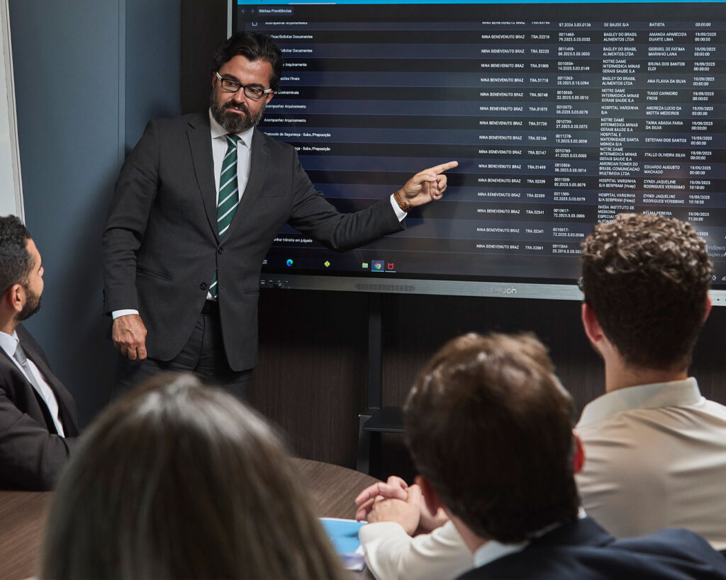 Nossos advogados combinam especialidade técnica com sensibilidade estratégica, adotando práticas modernas de gestão, tecnologia e compliance. A plataforma jurídica do escritório permite o controle e a transparência necessários a uma advocacia comprometida com o cliente corporativo.